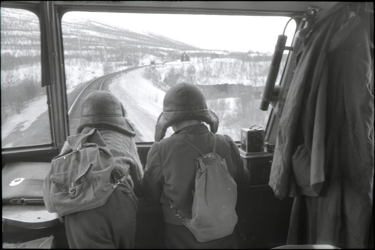 Titel: Barn tittar på utsikten från en motorvagn