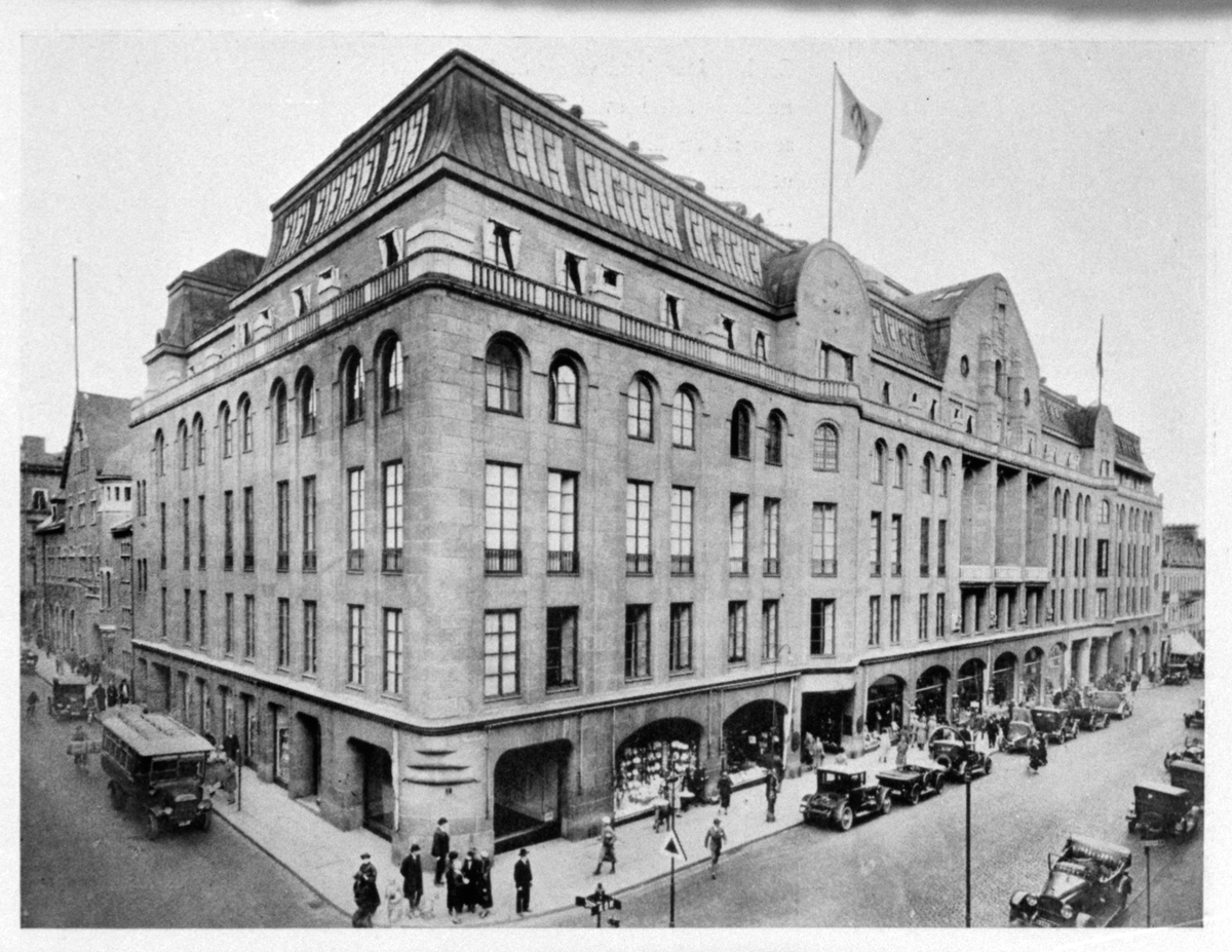 Stadstrafik utanför Nordiska Kompaniet, NK på hamngatan 18-20 i Stockholm.