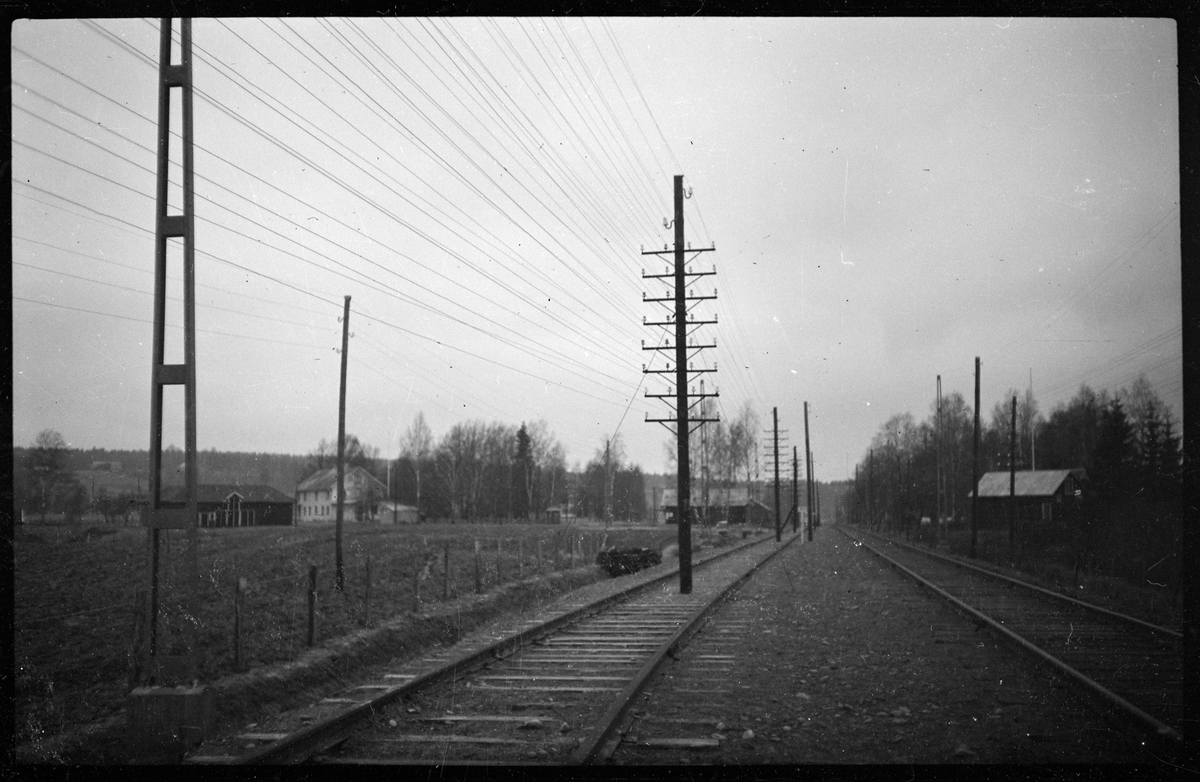 Dubbelspår, med telefonstolpar placerade i mitten av det ena spåret.