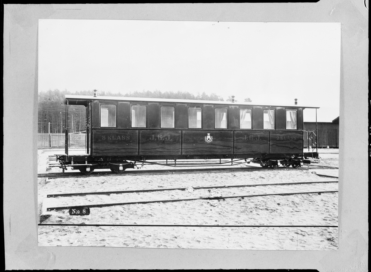 Jönköping - Gripenbergs Järnväg, JGJ 3:e klass personvagn utanför Aktiebolaget Södertälje Verkstäder.