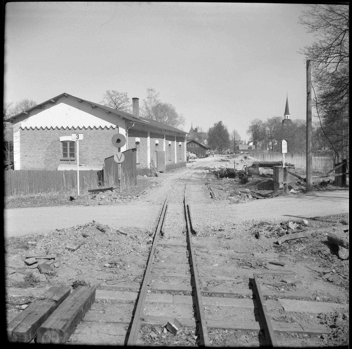 Bangården i Mariefred där bangårdsarbete påbörjats inför Museijärnväg Östra Södermanlands Järnväg, ÖSlJ:s verksamhet.