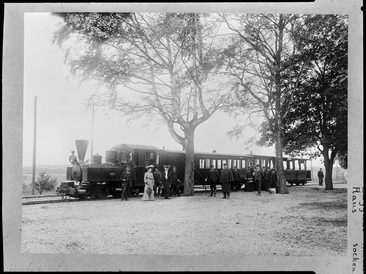 Helsingborg - Råå - Ramlösa Järnväg, HRRJ lok 1 "Råå", vagn CFo 7 och 14 eller 15 vid Ramlösabrunn.