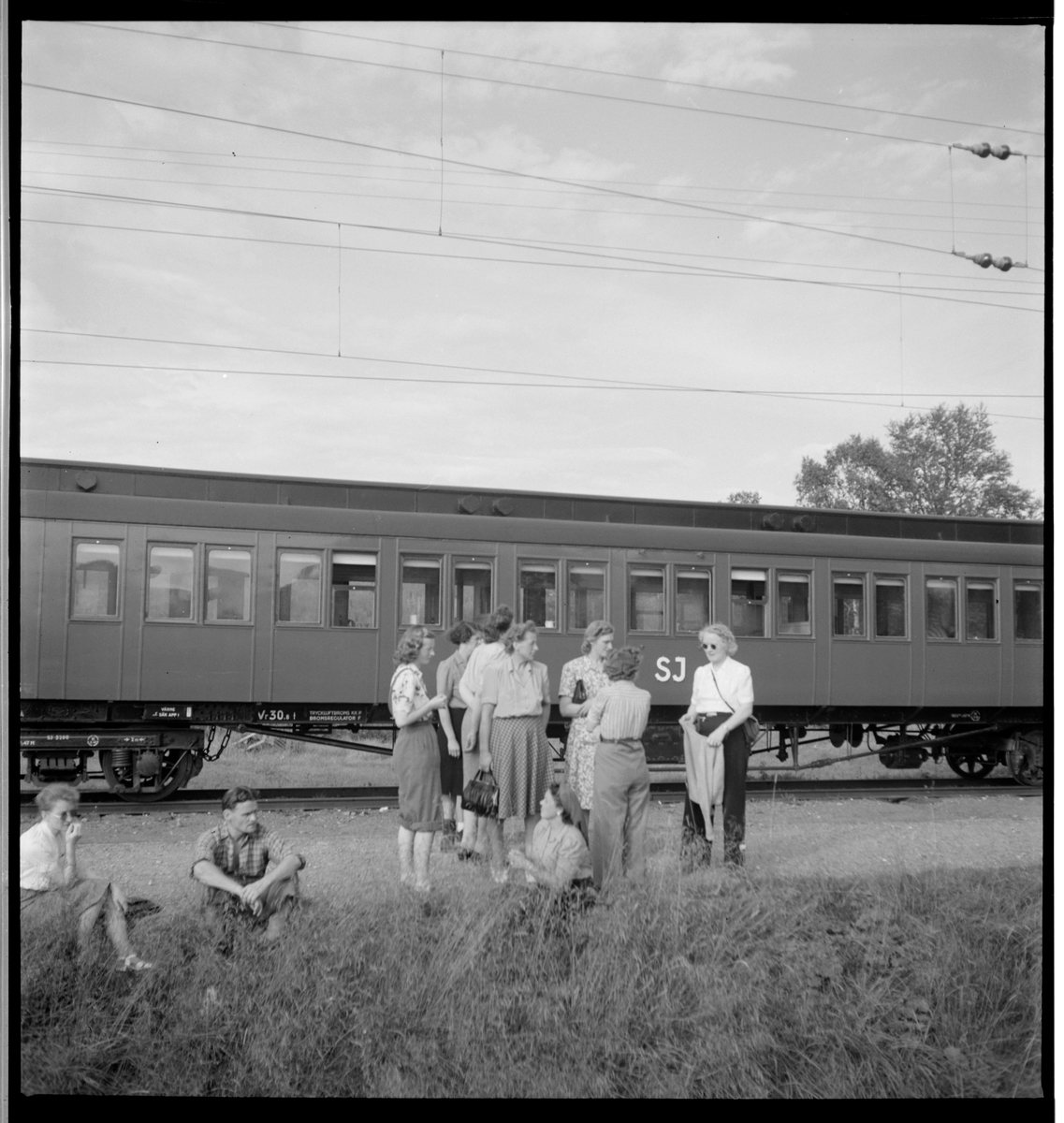 En grupp kvinnor framför en personvagn.