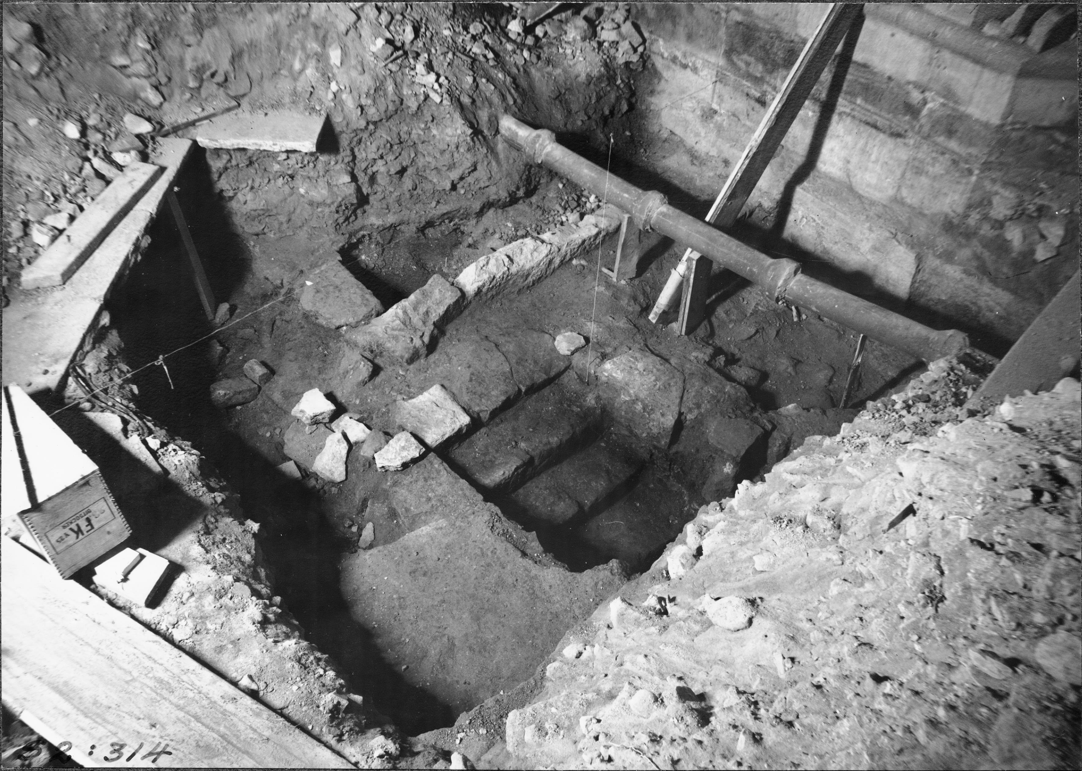 Grävning inom kyrkan, schakt X, norra trappan från sydöst.