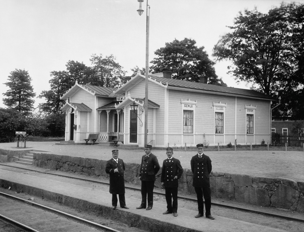 Personal vid Gemla järnvägsstation, däribland Stins E. Sundberg.