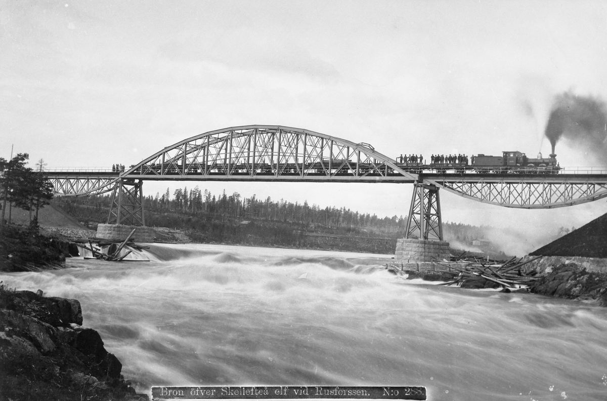 Den nyanlagda bron över Skellefte älv vid Kusfors. Bron bestod av 2 spann på 30 meter och ett spann på 61 meter. Kostnaden för bron var 198 070 kronor.