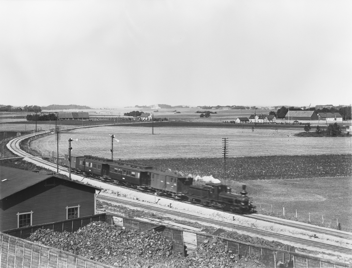 Ängelholm - Klippan Järnväg, EKJ lok 4 med tåg vid infarten till Klippan.