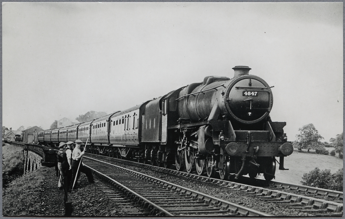 Persontåg, London Midland & Scottish Railway, L.M.S. 5 4847 byggd 1944 avställd 1966.