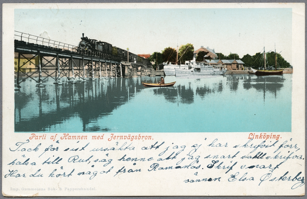 Titel: Hamnen med Järnvägsbron i Linköping.