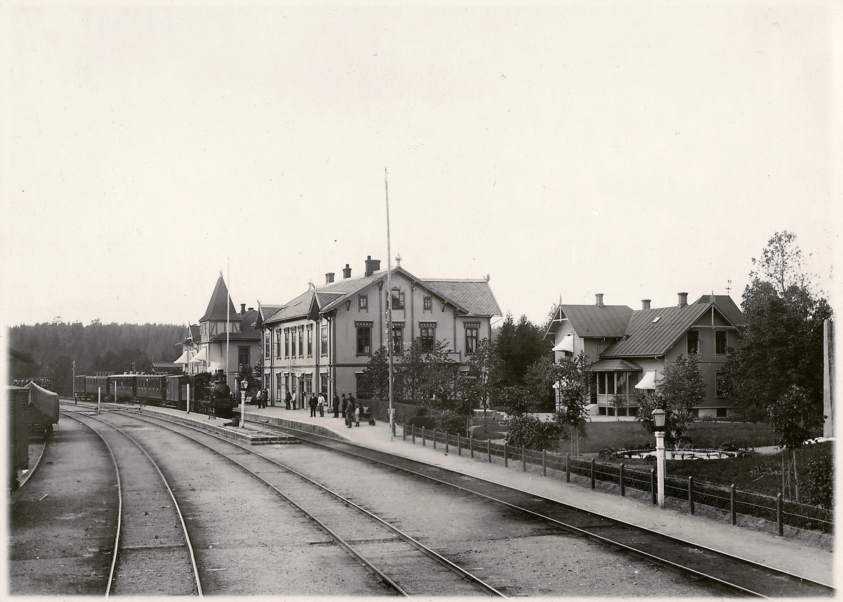 Pingstaftonens förmiddag 1910 brann stationen ned till grunden tillsammans med Hotell Drott, Lilla Hotellet och Järnvägshotellet. Stationsbyggnaden var från sitt ursprungliga skick påbyggd med en våning, samt en farstu norrut. 1912 stod det nya stationshuset färdigt. Intill dess användes en reservstation i en fastighet som tillhörde DJ och som låg vid spårområdet på södra sidan.