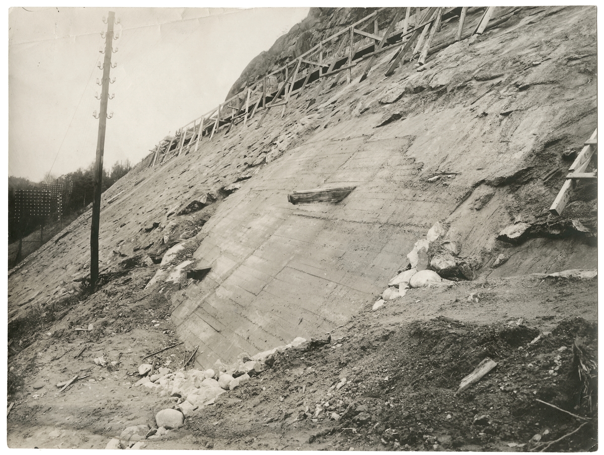 Titel: Förstärkningsarbeten på Storängsbanken vid Graversfors, strax norr om Åby, mellan Katrineholm och Norrköping.