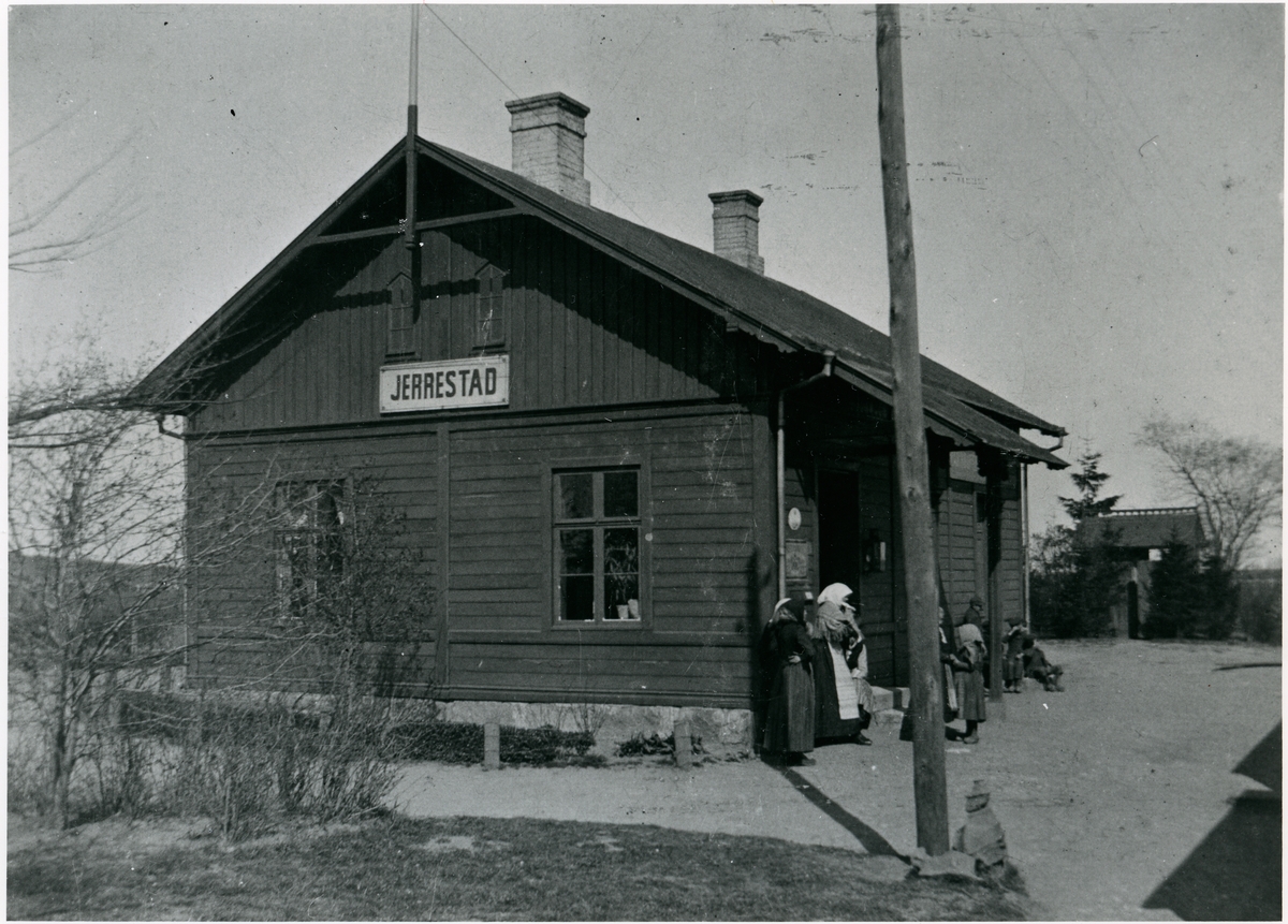Station på MSJ. Stavades ursprungligen JERRESTAD. Hållplats 1959, nedlagd 1/6 1975. Åter öppnad 100 m längre västerut 2/9 1985 (KA). Stationen byggd 1882 .Stationen öppnad 1882 med stationshus av trä. Ny station 1914, som finns kvar år 1991 i ombyggt skick som privatbostad. Trafikplatsen blev indragen 1975, men återöppnades 1 september 1985. Väntkur för Länstrafiken har uppsatts .Trafikplats anlagd 1882. Stationshuset, en och en halvvånings, putsat, blev 1912 ombyggt