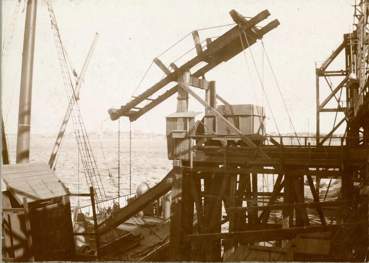Detalj till första malmutlastningsbryggan i Luleå, byggd av The Swedish and Norwegian Comp Ltd, ombyggd av SJ 1892-93. Den rivs 1913