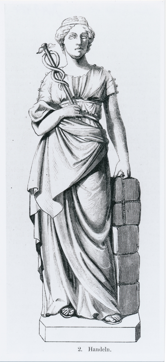 Avbildning av statyn "Handeln" från Ny Illustrerad Tidning den 19/7 1873. Illustratör okänd.