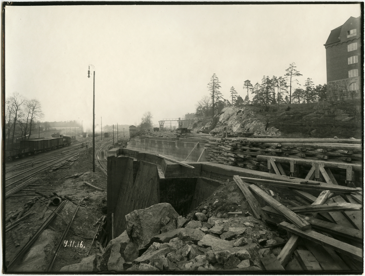 Viadukt över spåret Tomteboda - Värtan. Provisorisk övergång för huvudspåren.