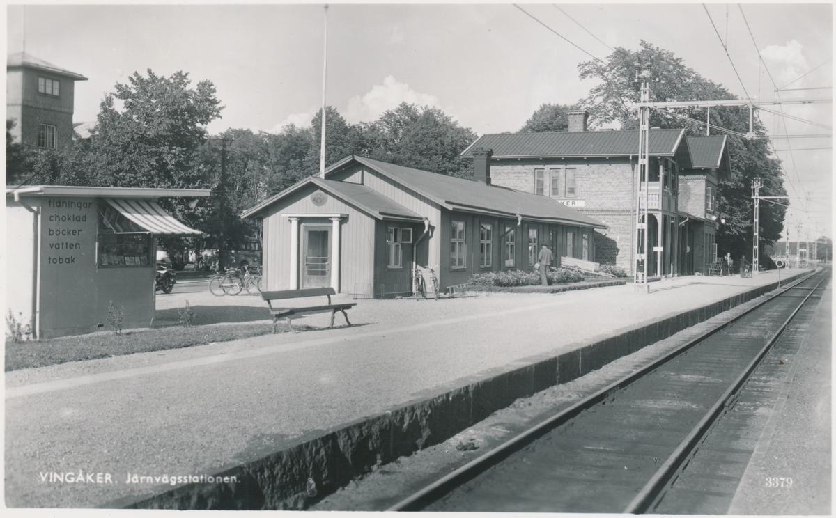 Stationen anlades 1862. Vingåker station hade stationshus av en lite mer ovanlig modell. Ett imponerande "kråkslott" med många rökhuvar på taket.