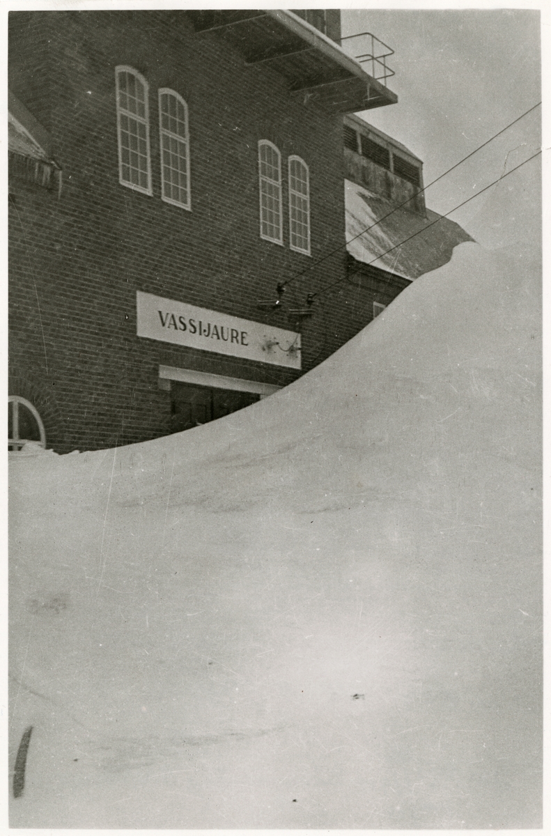 Statens Järnvägar, SJ, Snödriva ca 4m hög vid stationen 25 mars 1932. Stationen byggd 1902 elektrifiering 1915.