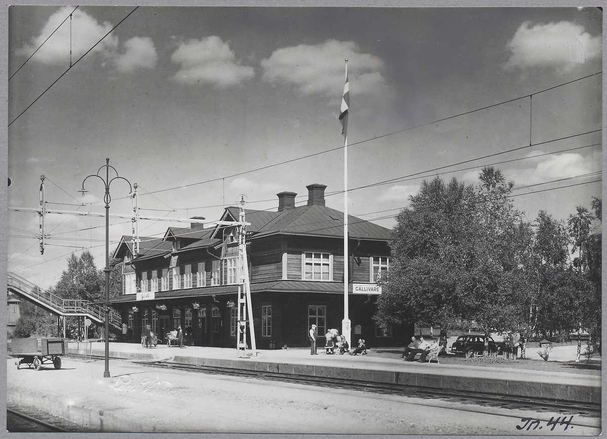 Tvåvånings stationshus av timmer, byggt av SJ. Arkitekt Folke Zettervall.