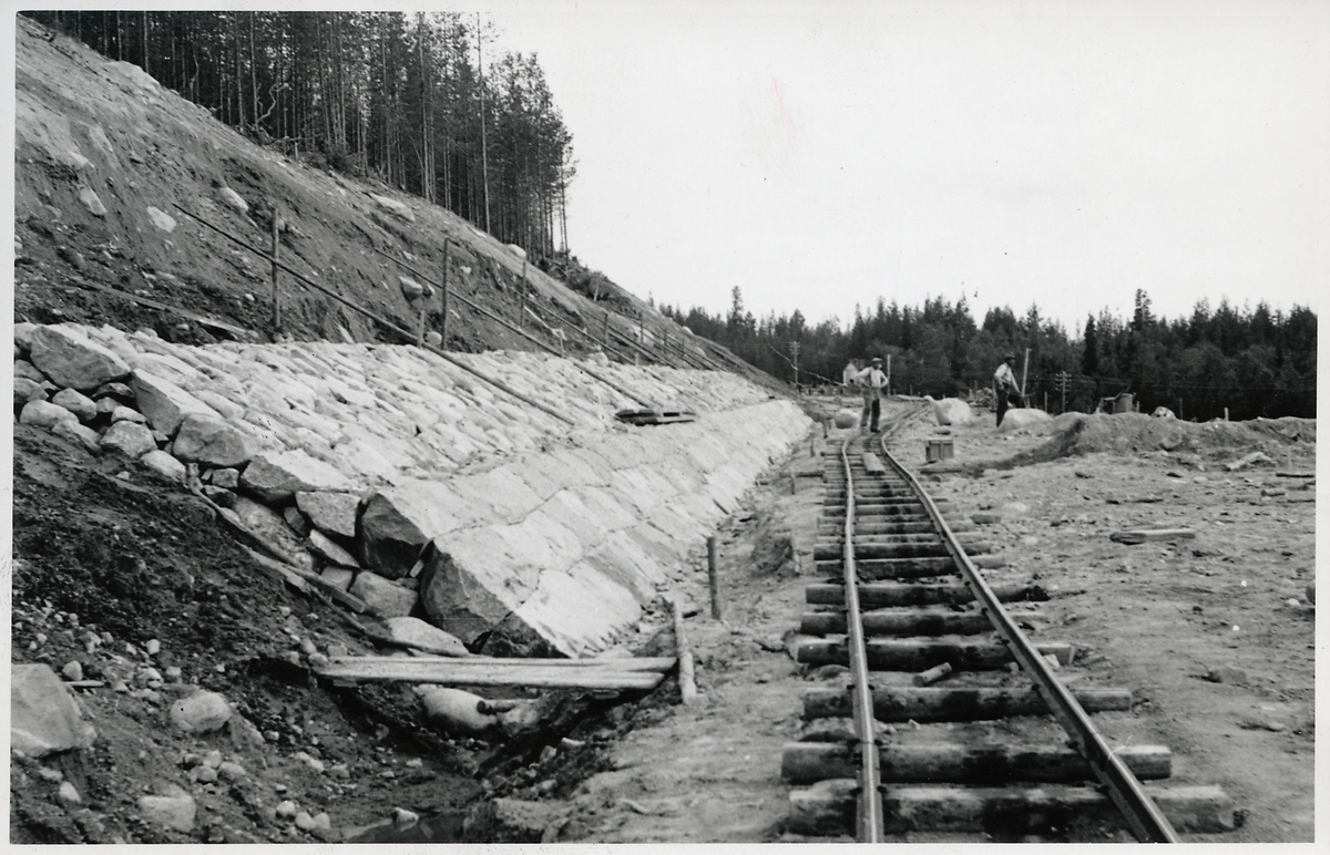 Släntförstärkningar någonstans på banan mellan Sorsele - Jokkmokk, bandel nr. 063, 065 och 067.