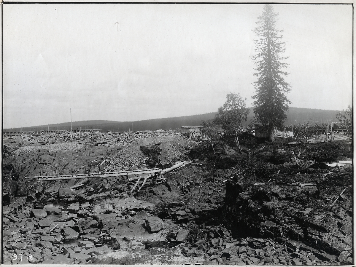 Titel: Porjus kraftverk under byggnation. Arbetet med lilla skibordet.