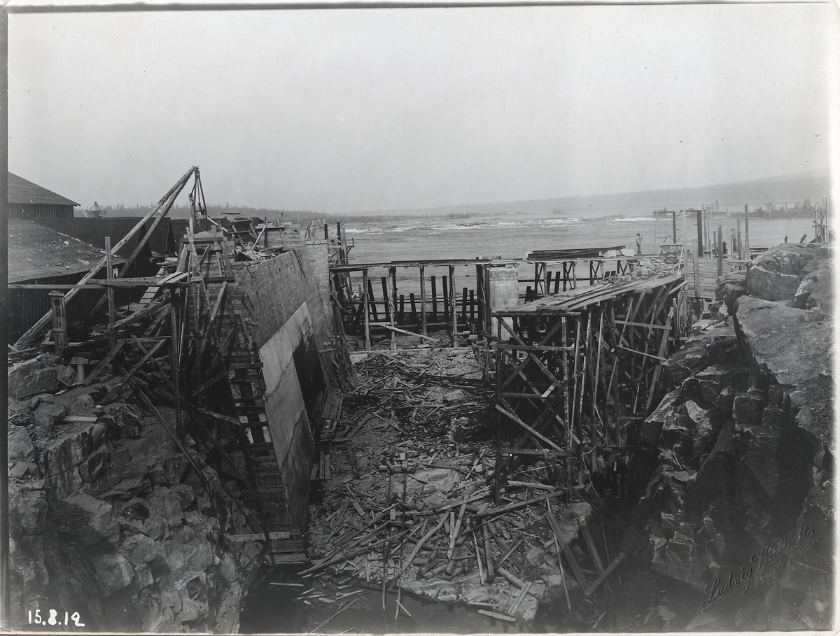Porjus kraftverk under byggnation. Intaget sett inifrån.