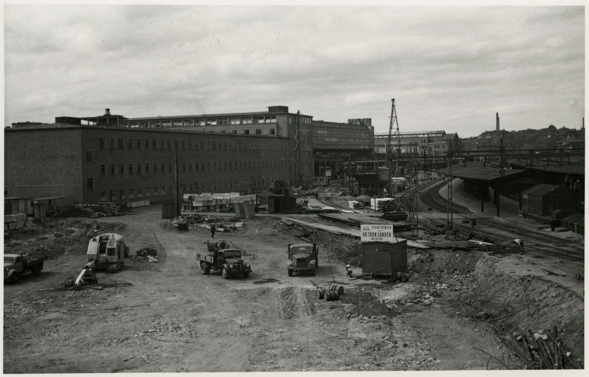 Statens Järnvägar, SJ, Stockholm centralstationen ombyggnad av bangården 1954.