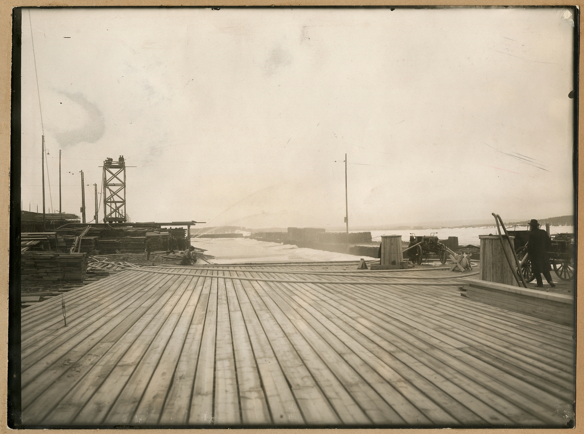 Titel: Brygga vid Statens Järnvägars slipersfabrik i Piteå.