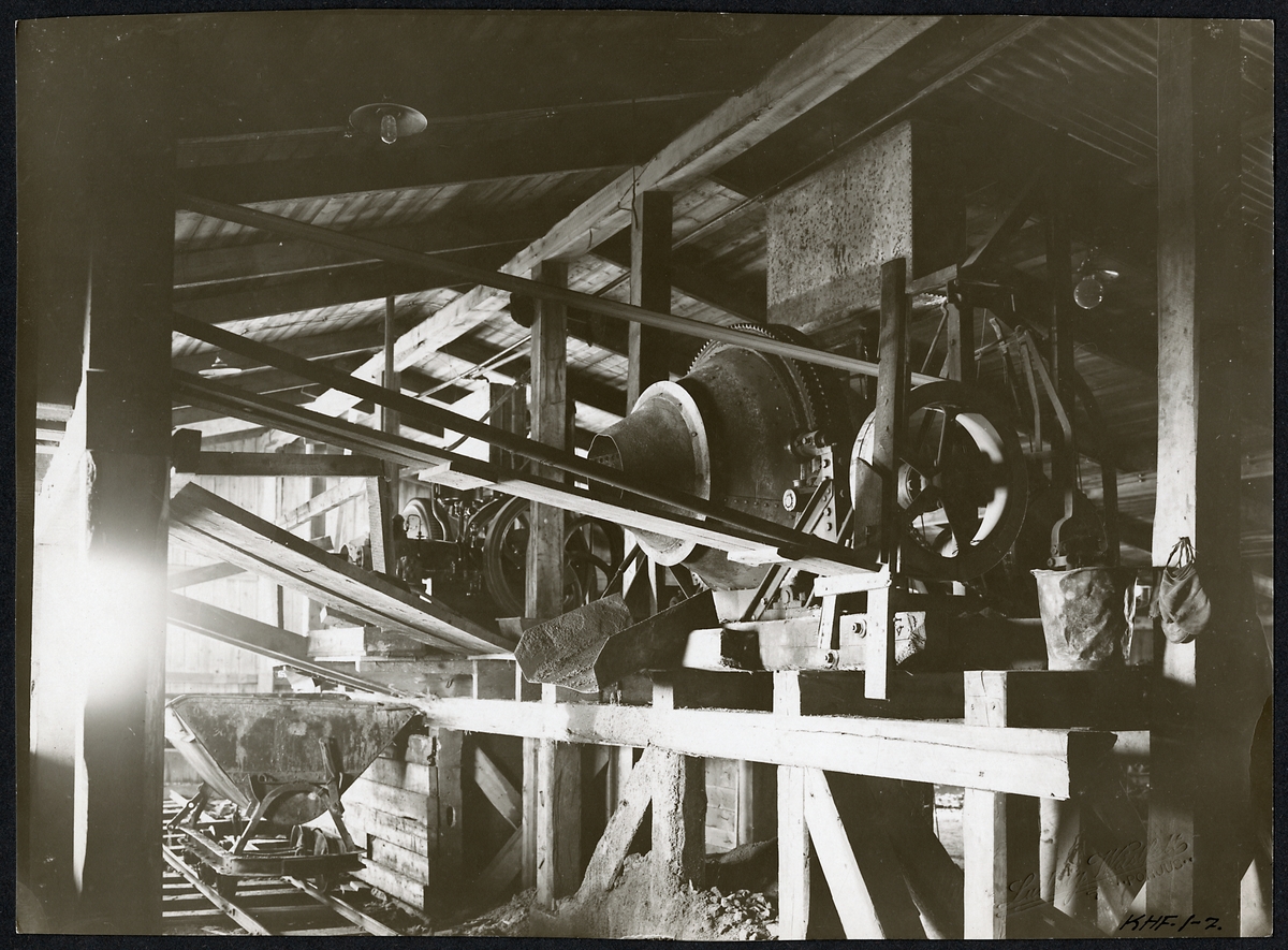 Betongblandningsstation för brobygget över Torne älv. Mitt i bilden en Carlsviks motor, tillverkad av Carlsviks Gjuteri i Stockholm.