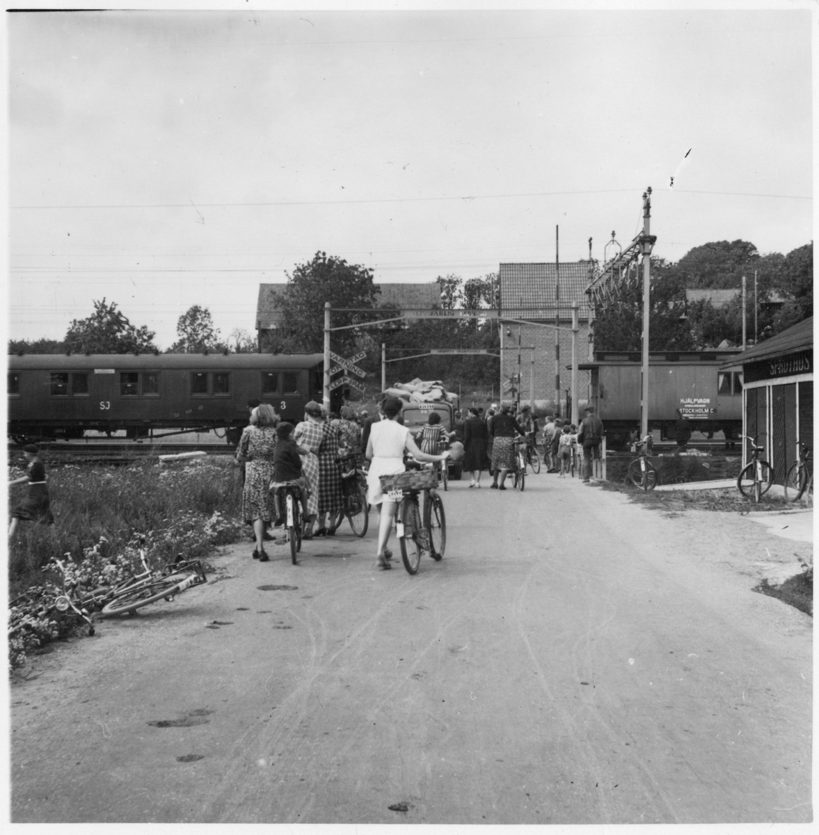 Järnvägsövergången i Upplands Väsby under arbetet vid tågolyckan där 1943.