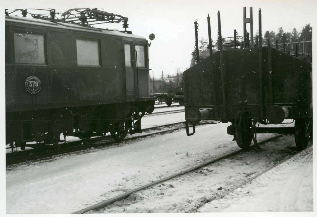 Statens Järnvägar, SJ D 379 och godsvagn i Ånge.