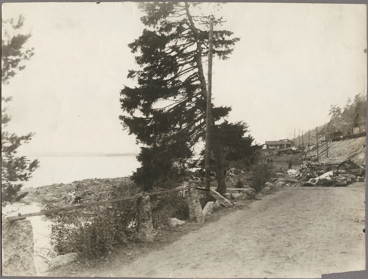 Vy över jordskredets väg i Getå där Statens Järnvägar, SJ F 1200 med tåg spårade ur den 1 okotber 1918.