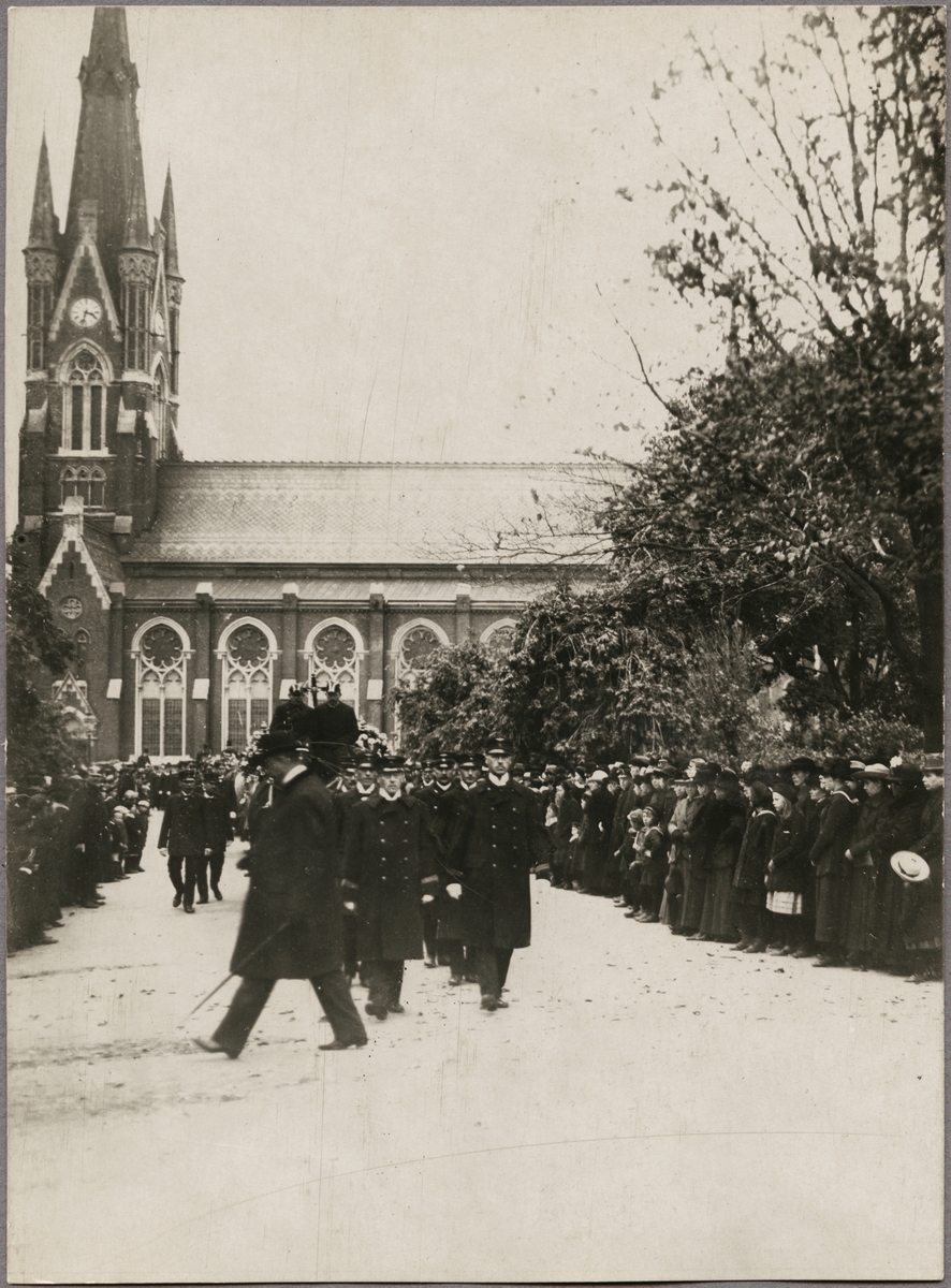 Titel: Begravningsprocession utanför Matteus kyrka.