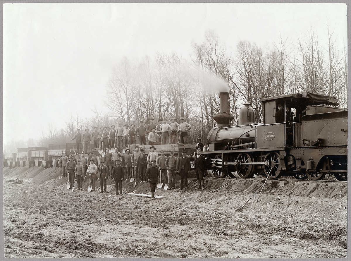 Arbetslag med gruståg på linjen mellan Kärreberga och Värnamo. Helsingborg Hässleholms Järnväg, HHJ lok 5 "Kärnan".