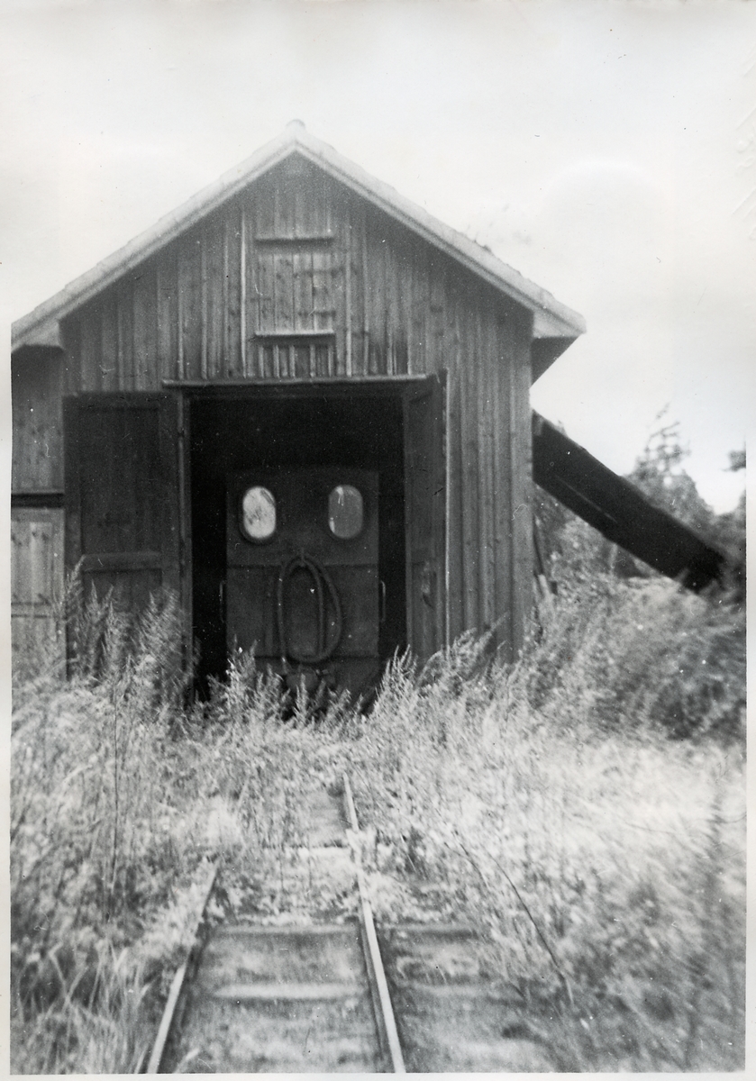 Lokstallet vid Lindfors Gård. Lindfors Bosjöbanan, LBB lok 2 "Lotta".