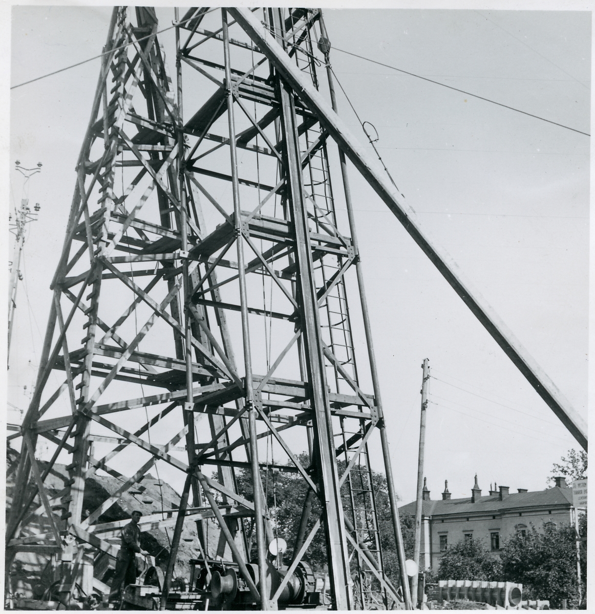 Pålen på vägportsbygget i Skövde hissas vidare.