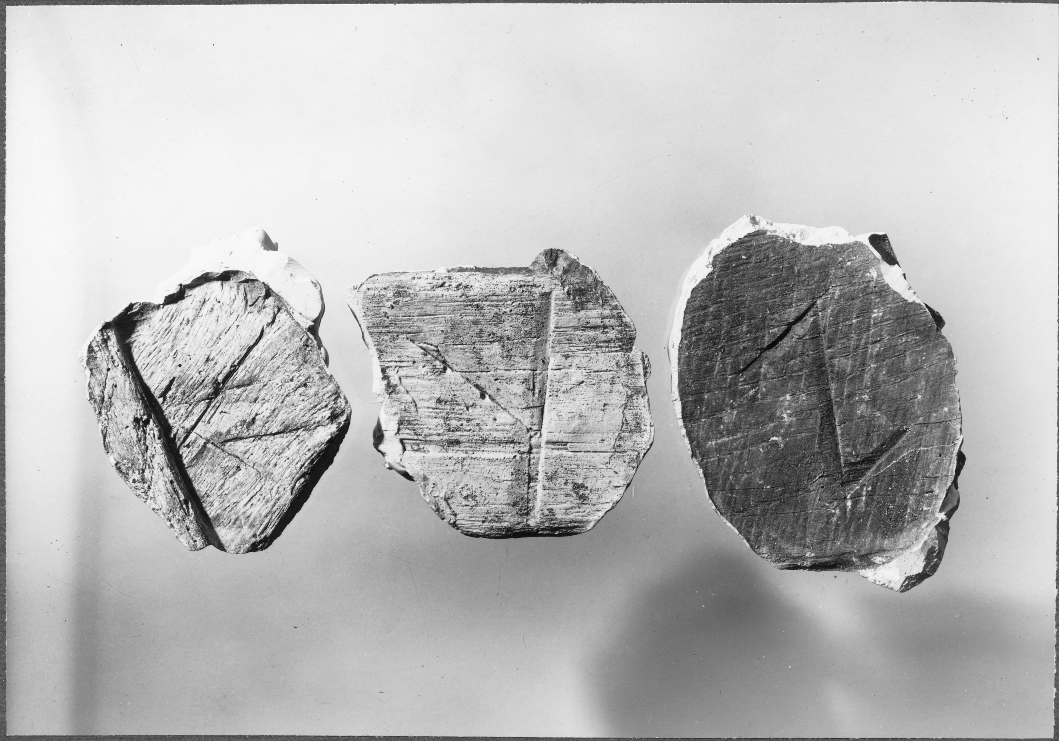 Runtecken på sekundärt använt timmer. Foto efter avgjutningar.