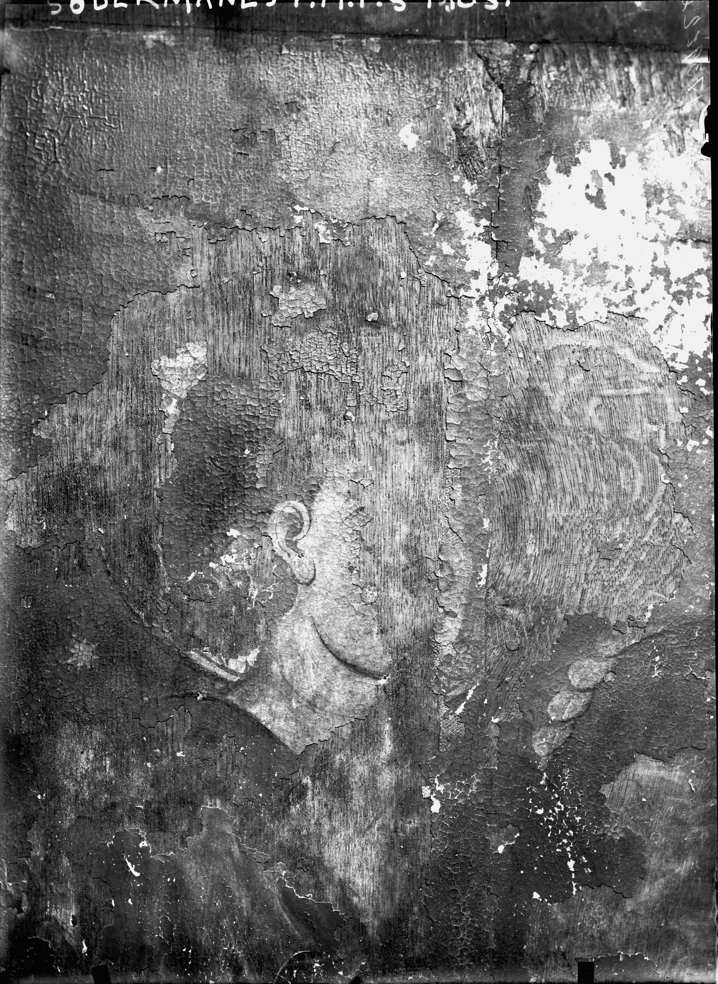 Dörr till triptyk, yttersidan med ängeln Gabriel. Tyskt arbete från 1300-tal.