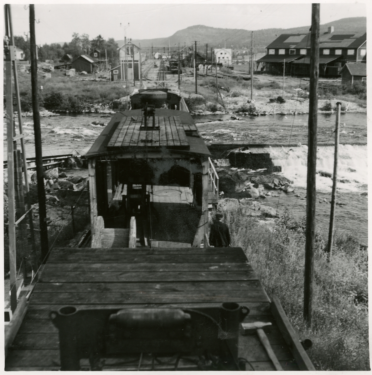 Elektrifieringen av sträckan Ånge - Sundsvall. Monteringståget på infart till Torpshammar.