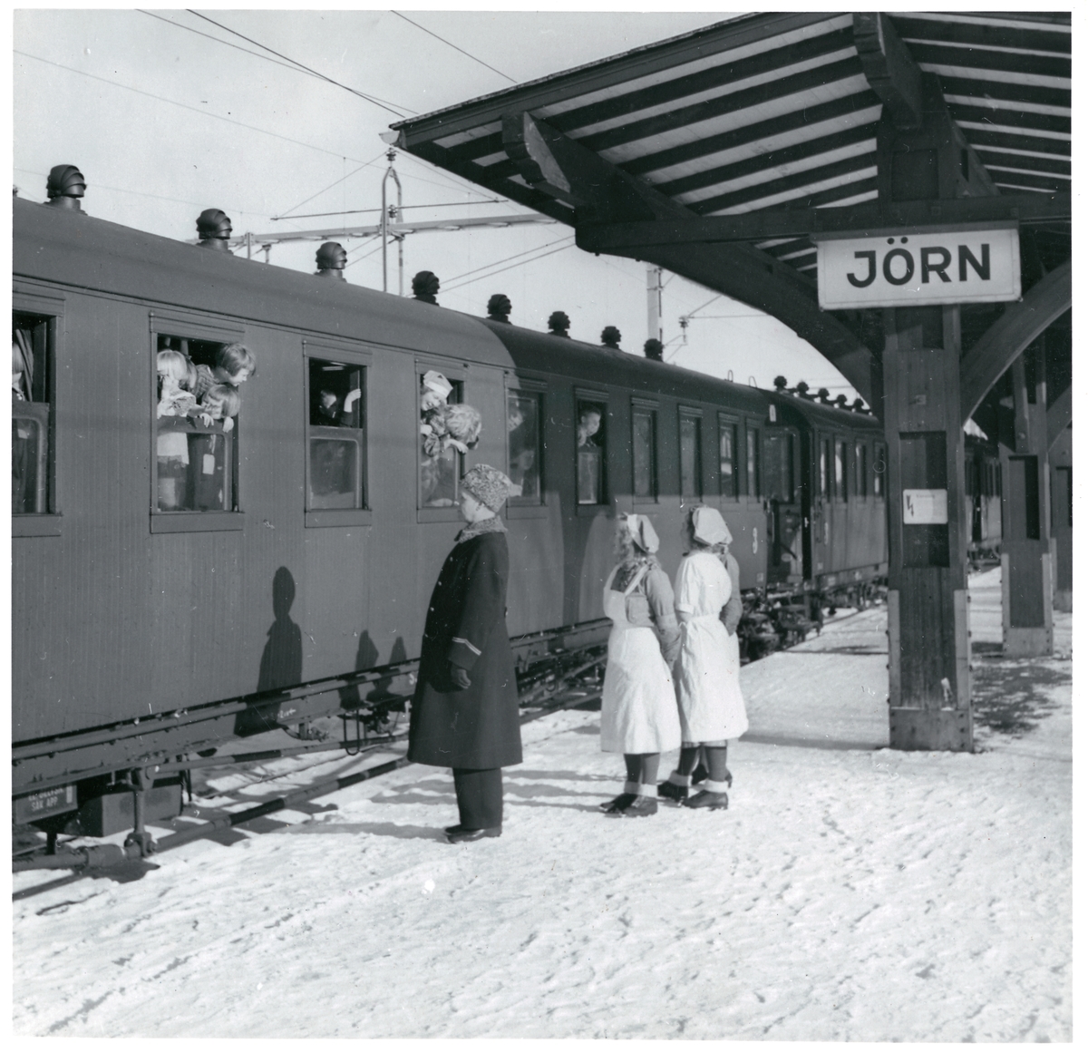 Stinsen på Jörns station, och några lottor vid barnevakueringståg.