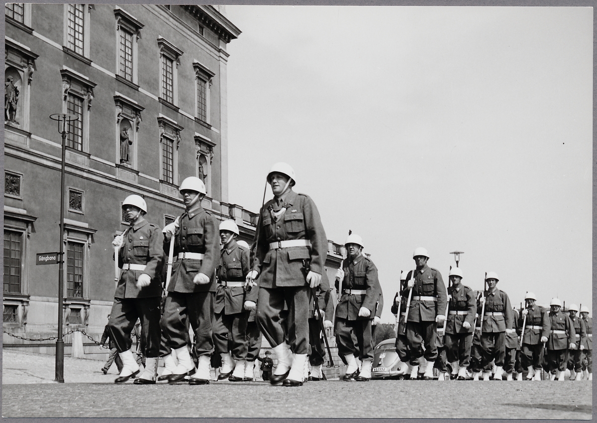 Statens Järnvägar SJ driftvärn, Karlshamns division, går vaktparaden vid Kungliga slottet.