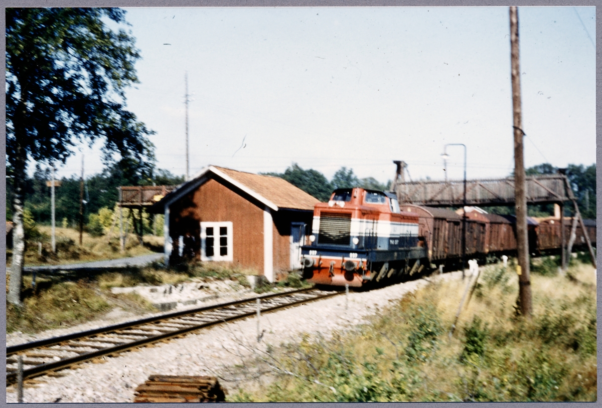 Fjärrgodståg från Linköping - Västervik passerar linbanan vid Almvik. SJ T43 237.