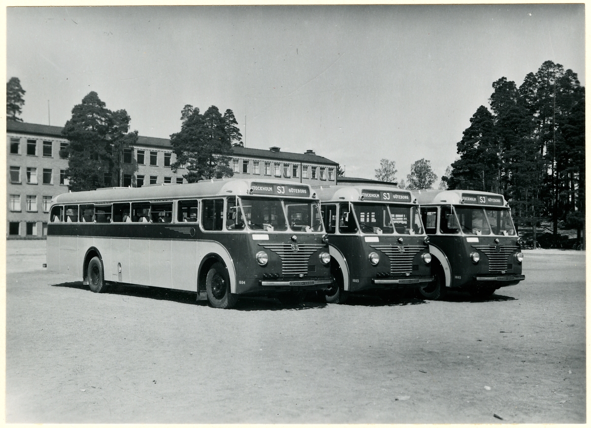 Statens Järnvägar, SJ bussar, från vänster 1884, 1883 och 1885.