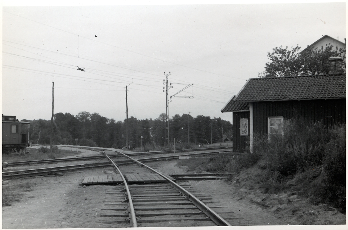 Korsningen mellan Älvsborgsbanan och Västra stambanan, vid Herrljunga station. Här på Älvsborgsbanan i riktning mot Uddevalla.