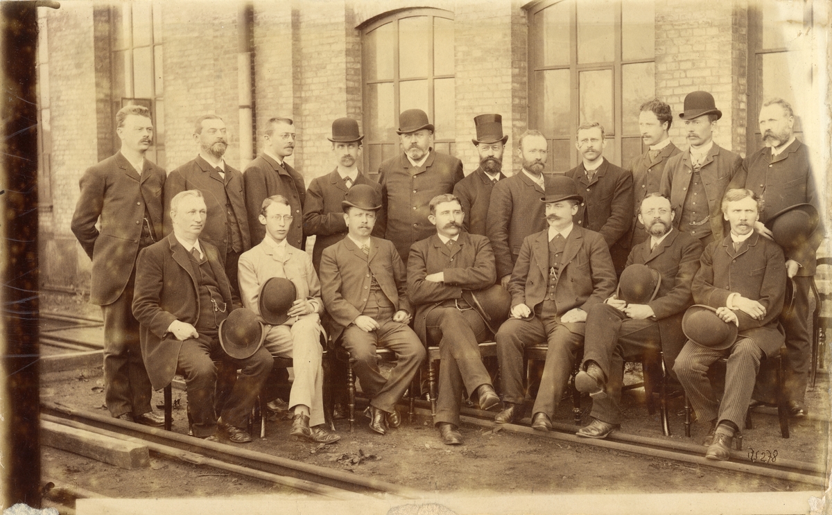 Gruppbild från Gd Pegelows tid i Göteborg 1892. Tidsbestämt med hänsyn till att Silverstolpes vänstra hand är utan ring.