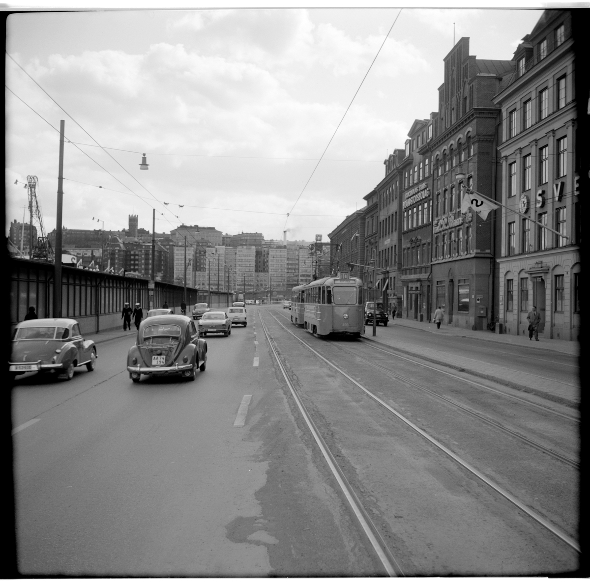 Aktiebolaget Stockholms Spårvägar, SS A25 403 "mustang" linje 10 Värtan - Slussen - Hornstull vid Skeppsbron.
