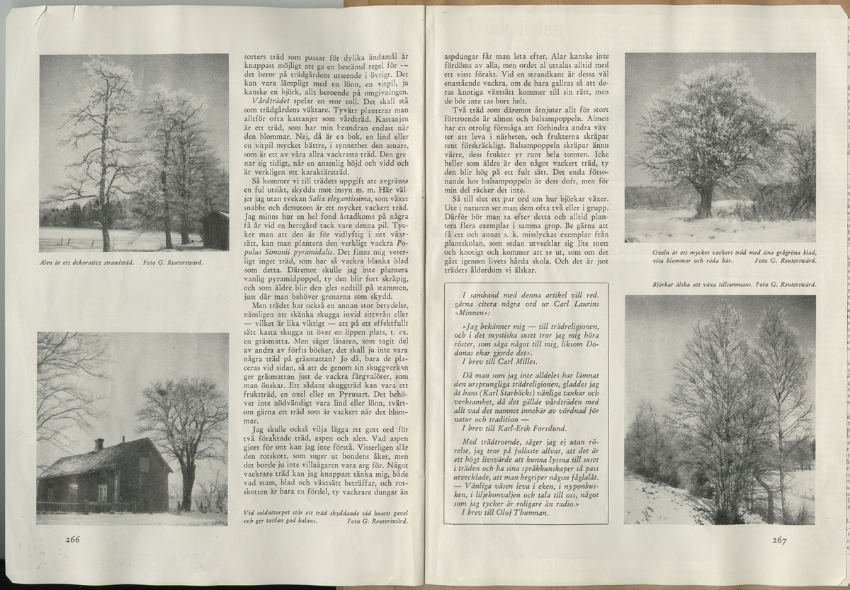 Fortsättning av föregående artikel: Hem i Sverige, Nr. 4, 1947: Träd i trädgård.