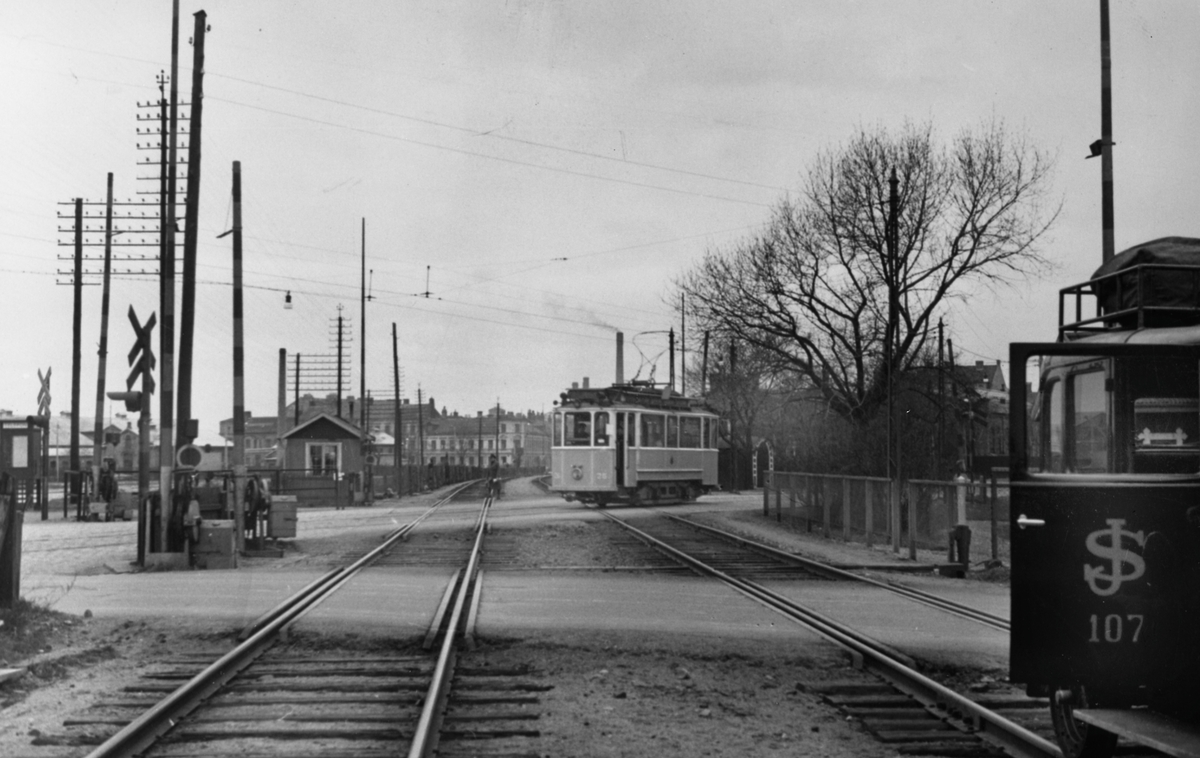 Titel: Södergatan/Sandgatan Helsingborg linjen Helsingborg - Eslöv. Korsningen Södergatan och Sandgatan.