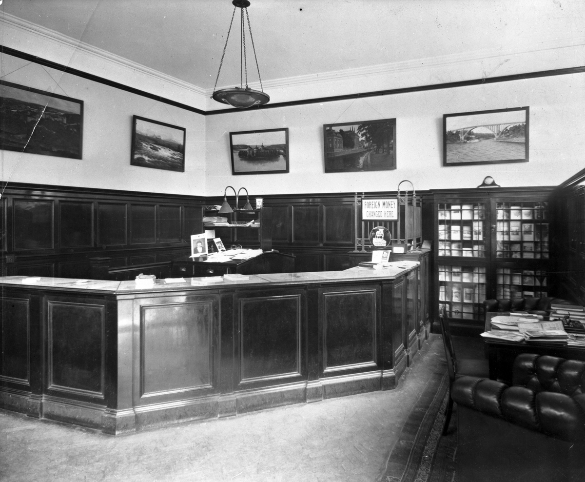 Interiörsbild från "Swedish Travel Bureau" på Coventry street i London.