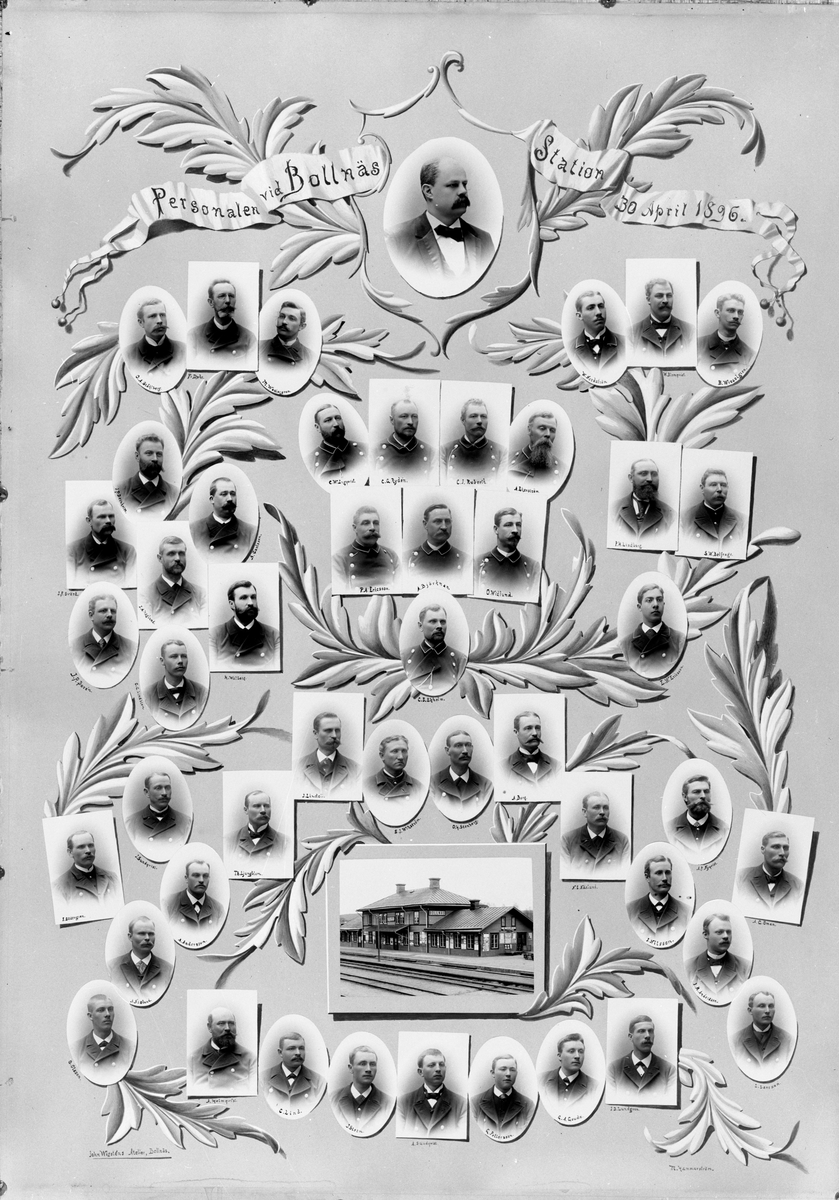Titel: Personal vid järnvägsstationen i Bollnäs. (SJ). Vid järnvägsspåret mellan Holmsveden och Bollnäs