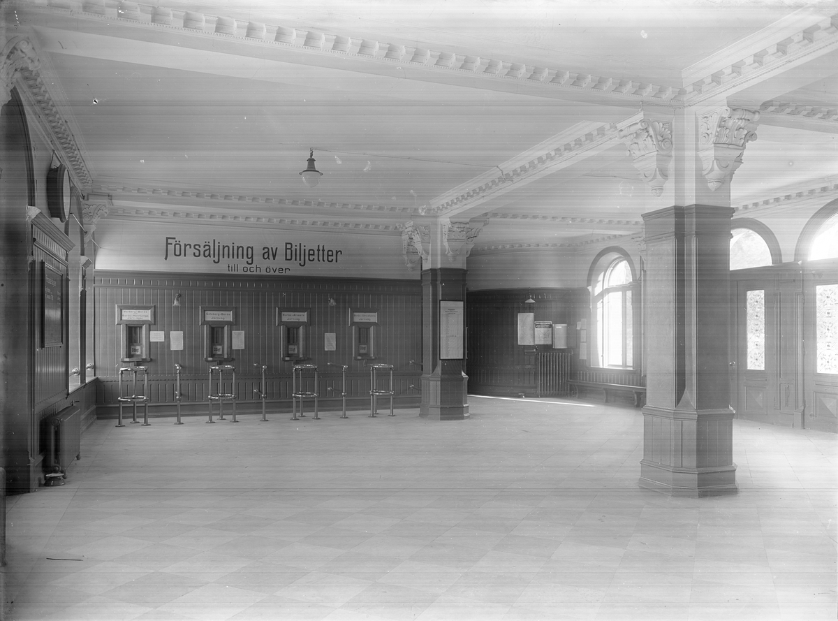 Titel: Stora väntsalen med försäljningsluckor i Borås stationshus